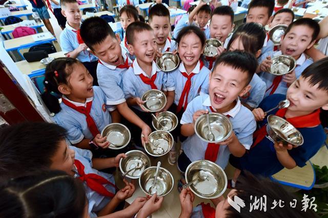 9月2日,武汉市光谷第十二小学三年级学生开展“我光盘,我光荣”主题班会,对学生进行爱粮节粮、勤俭节约专题教育。午餐时,在老师的指导下,学生们按需取食,践行光盘行动,杜绝舌尖上的浪费。